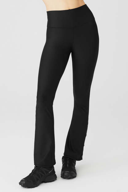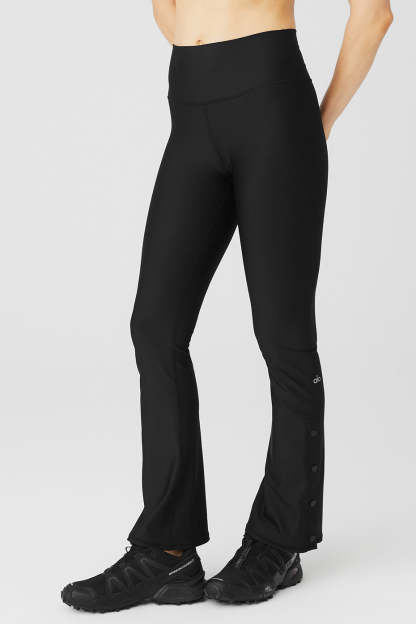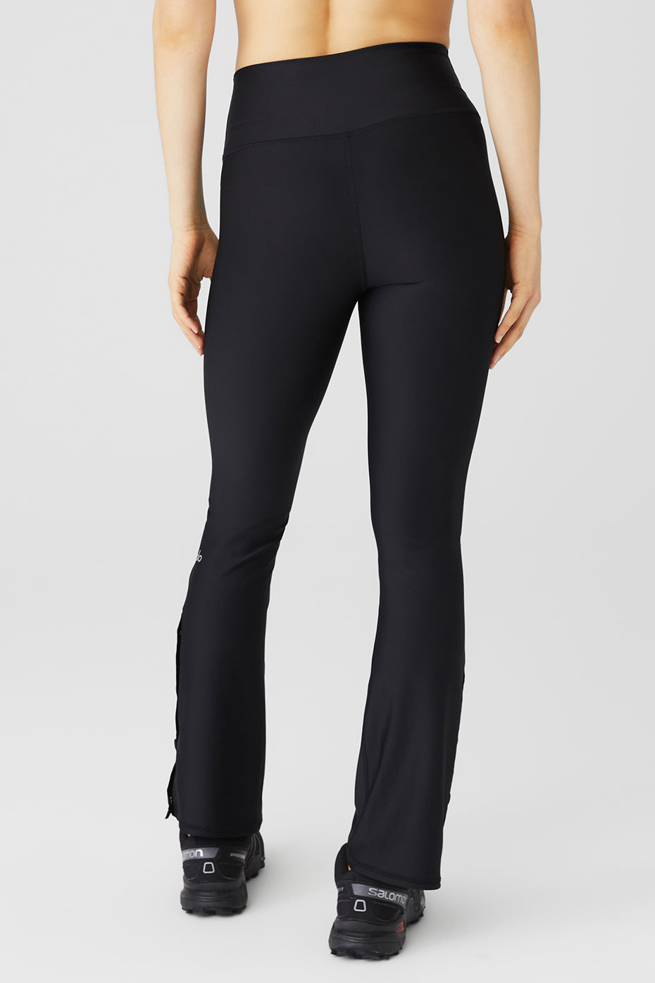 Everything you love about forward flares, now in a sleek new silhouette! The High-Waist 7/8 Game Changer Legging in performance-perfect Airlift is ready for studio days and nights out, with athelo*s signature high rise and secure wide waistband. A flared leg with side snap closure adds extra ventilation and is great for showing sneakers! Effortlessly tie this look together by pairing it with a cropped coverup.