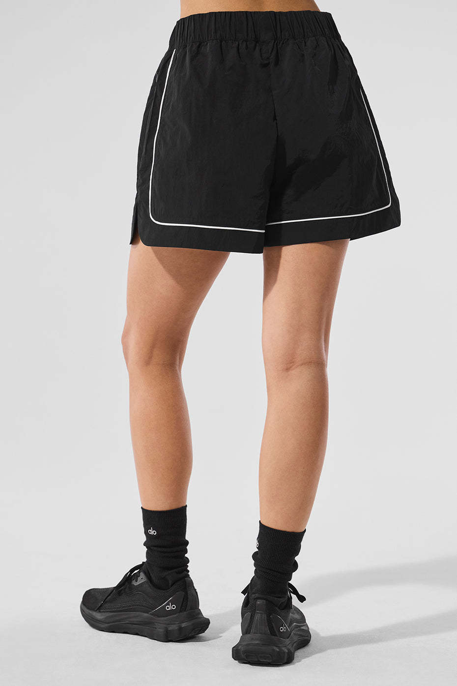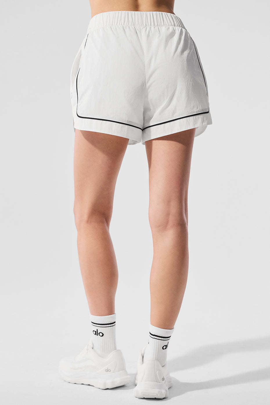 Sporty chic is back. The Motivate Track Short is a longer length style with contrast piping and zippered pockets. Its made from a swishy, performance-like fabric that adds to the sporty cool vibe of your look. Pair it with the Motivate Track Jacket for a chic studio-to-street outfit you��ll be wearing for seasons on end.