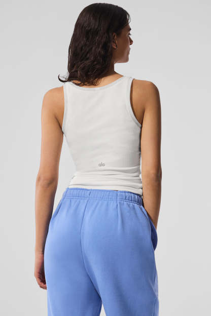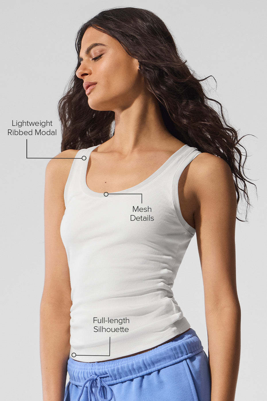 Looking for a wardrobe staple with a twist? The Ribbed Mesh Secret Tank is the perfect option. Made from a lightweight and stretchy ribbed modal fabric, this tank has a perfect body-skimming fit, but features made-you-look mesh details althtong the collar and sleeves. Wear it on a night out or to elevate a laidback look.