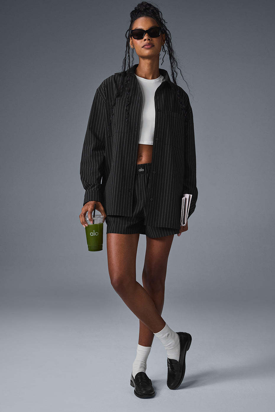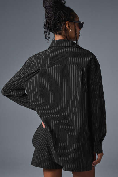 Add this button down to any outfit to instantly level up your look. It��s oversized, slightly boxy, and features a classic collar. The lightweight feel makes it ideal for layering over a sports bra or tank, and the structured fit is buttoned-up enough for the office or a night out. Stripe right and pair it with the matching Pinstripe Daylight Boxer Short.
