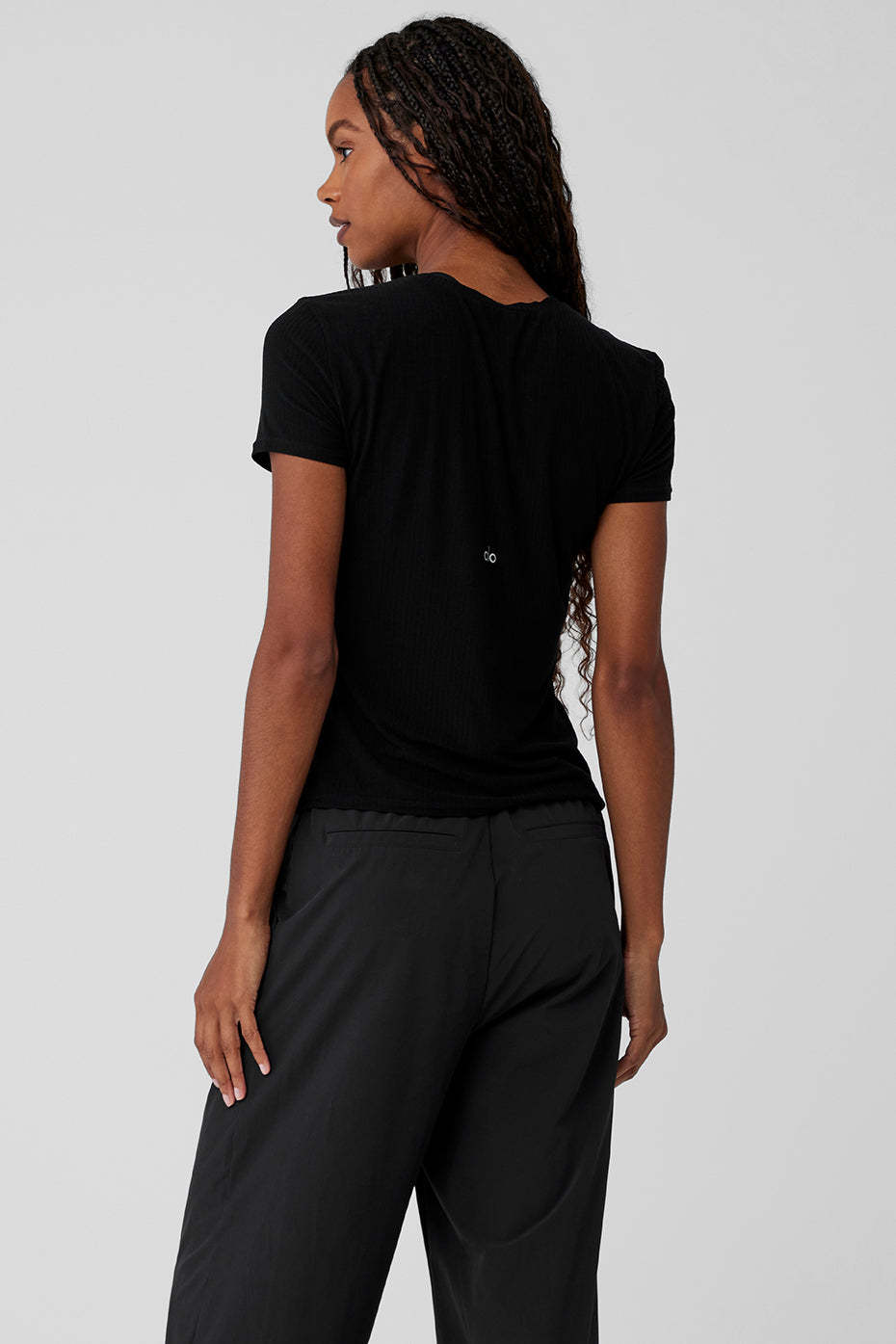 Cut to flatter, this classic crewneck has a body-skimming fit, short sleeves and a hip-grazing hem. Made from our new Sea Coast fabric that's thin but not see-through, softly ribbed and perfectly stretchy, it*s the closet staple you can count on to finish almost any outfit.